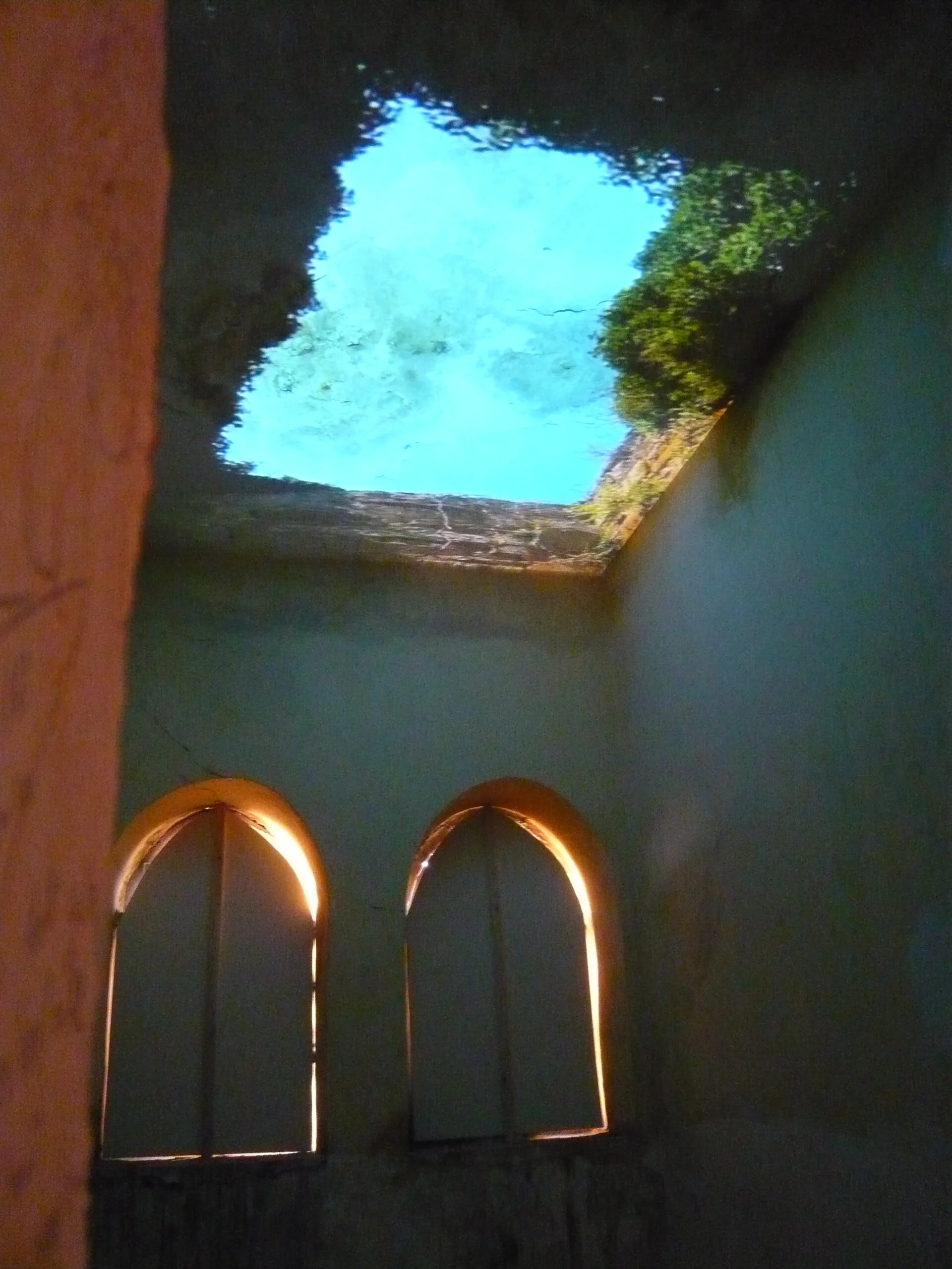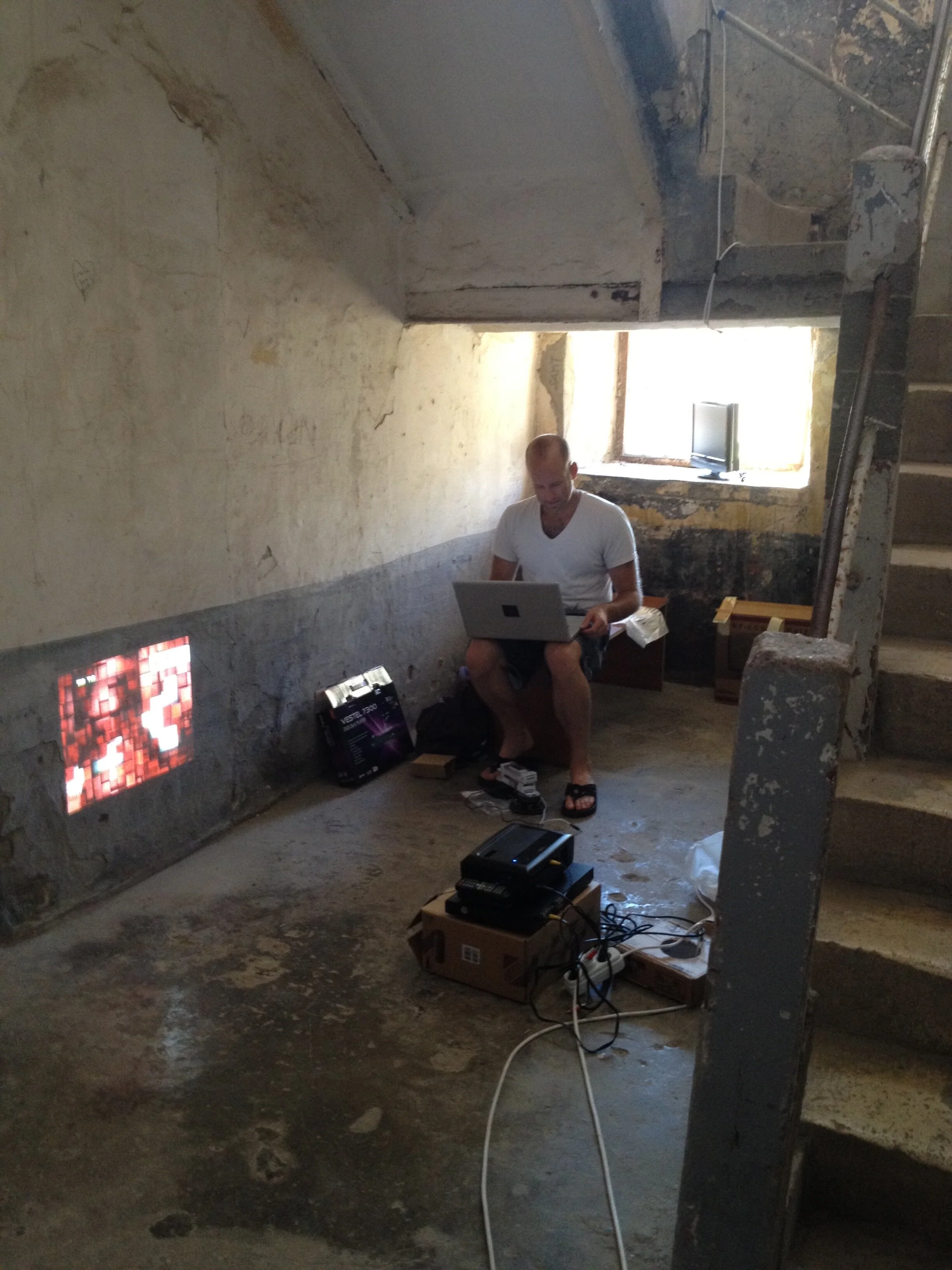 Ashley’s film projected onto the ceiling of a stairwell in the Sinop Fortress Prison.